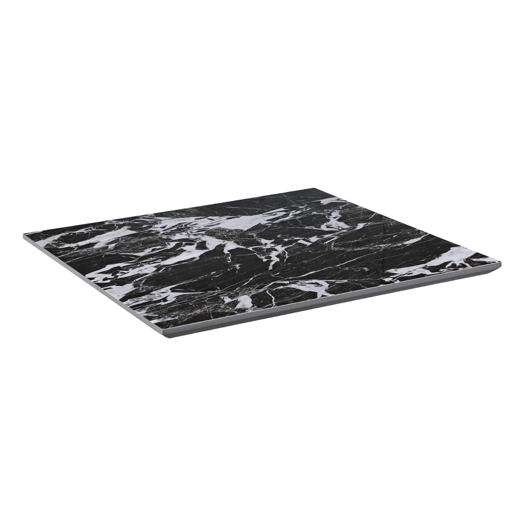 This 7/8" black marble sintered stone table top features striking bold white veining, combining natural elegance with advanced durability. Engineered to withstand both indoor and outdoor environments, it offers exceptional resistance to scratches, stains, and weather elements. Ideal for sophisticated dining or workspaces, this table top maintains its refined appearance over time with minimal maintenance. Its sturdy, sleek surface provides a timeless aesthetic while supporting versatile design applications.