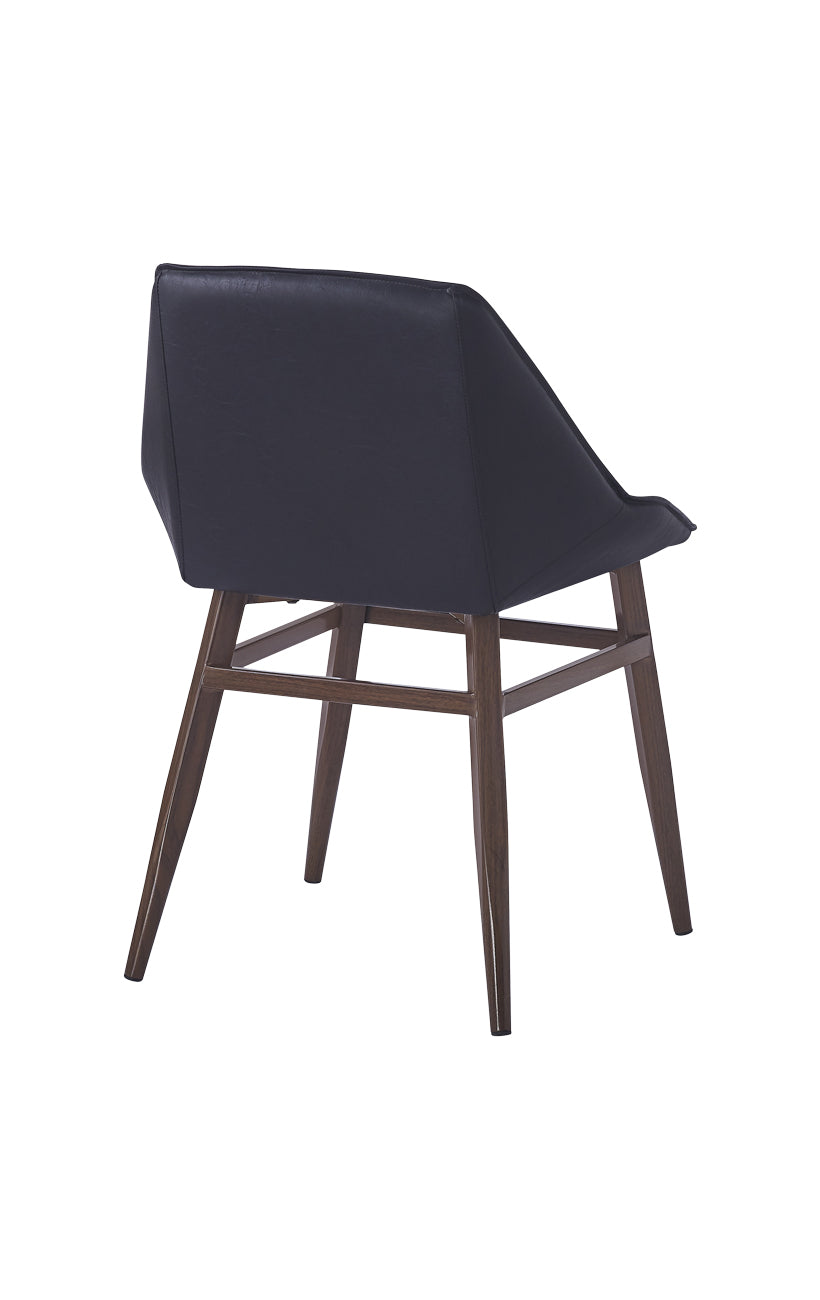 Indoor Dark Walnut Modern Metal Chair with Black Vinyl Seat