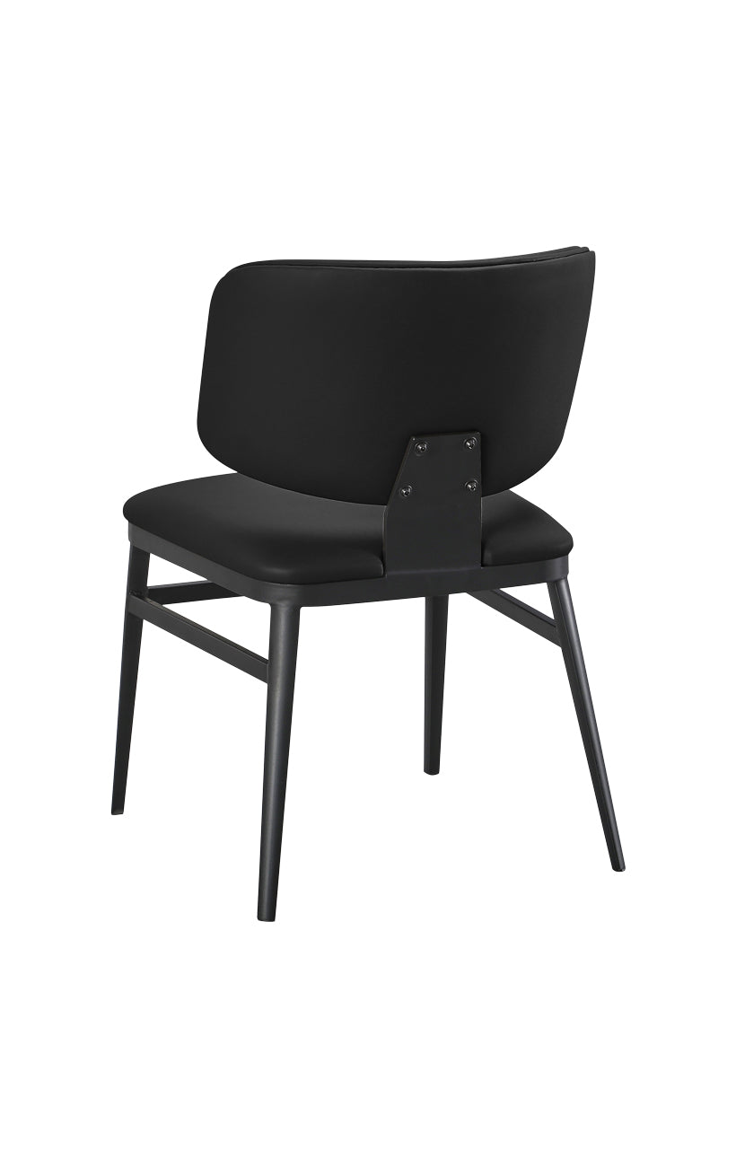 This indoor metal chair features a sturdy black metal frame designed for durability and stability. Its black vinyl seat and back provide comfortable support while being easy to clean and maintain. Ideal for professional or casual indoor settings, this chair combines practical materials with a sleek, minimalist design suited to various environments.