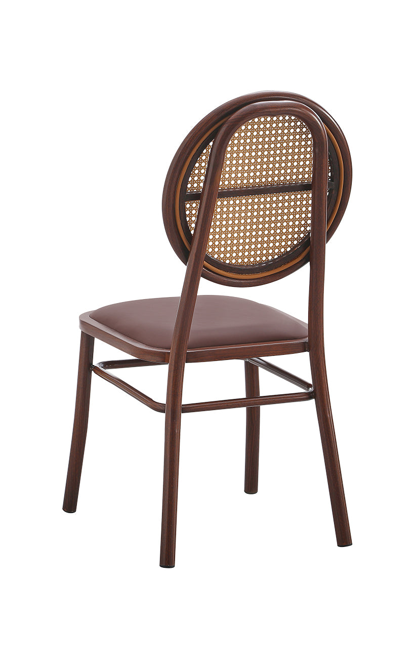 Indoor Metal Chair with Poly Woven Backrest and Cushioned Mahogany Vinyl Seat