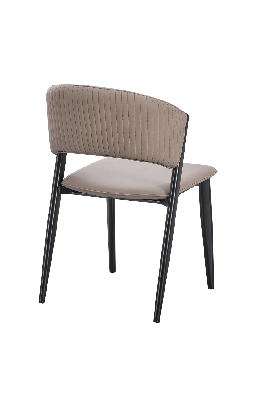 Designed for indoor use, this dining chair combines durability and comfort with a sturdy black metal frame and padded vinyl seat and backrest. The ribbed backrest adds ergonomic support while enhancing the chair’s modern aesthetic. Its cushioned seating ensures extended comfort during meals or gatherings, making it a practical and stylish addition to any dining space.