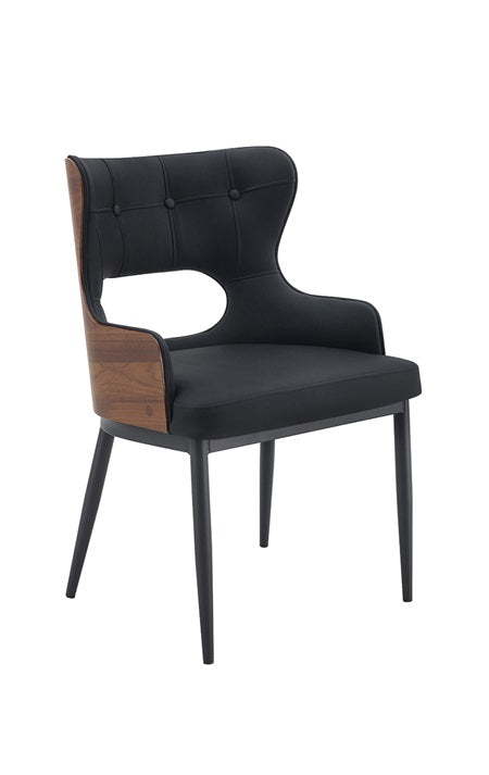 Indoor Black Vinyl Padded Metal Arm Chair with Veneer Back Panel